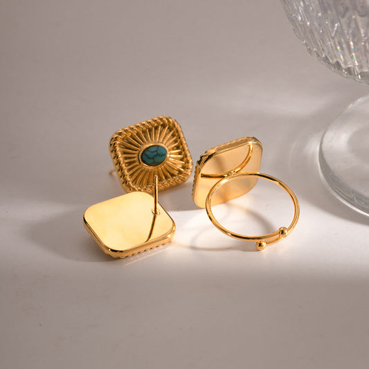 Sold outAnillo y Aretes Melody con Turquesa