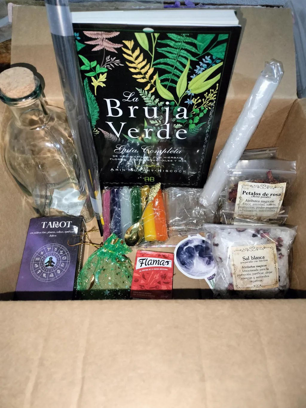 Lo principal es que llegó bien sellado, todos los productos llegaron en buenas condiciones junto con el libro y el manual de los rituales. Excelente compra